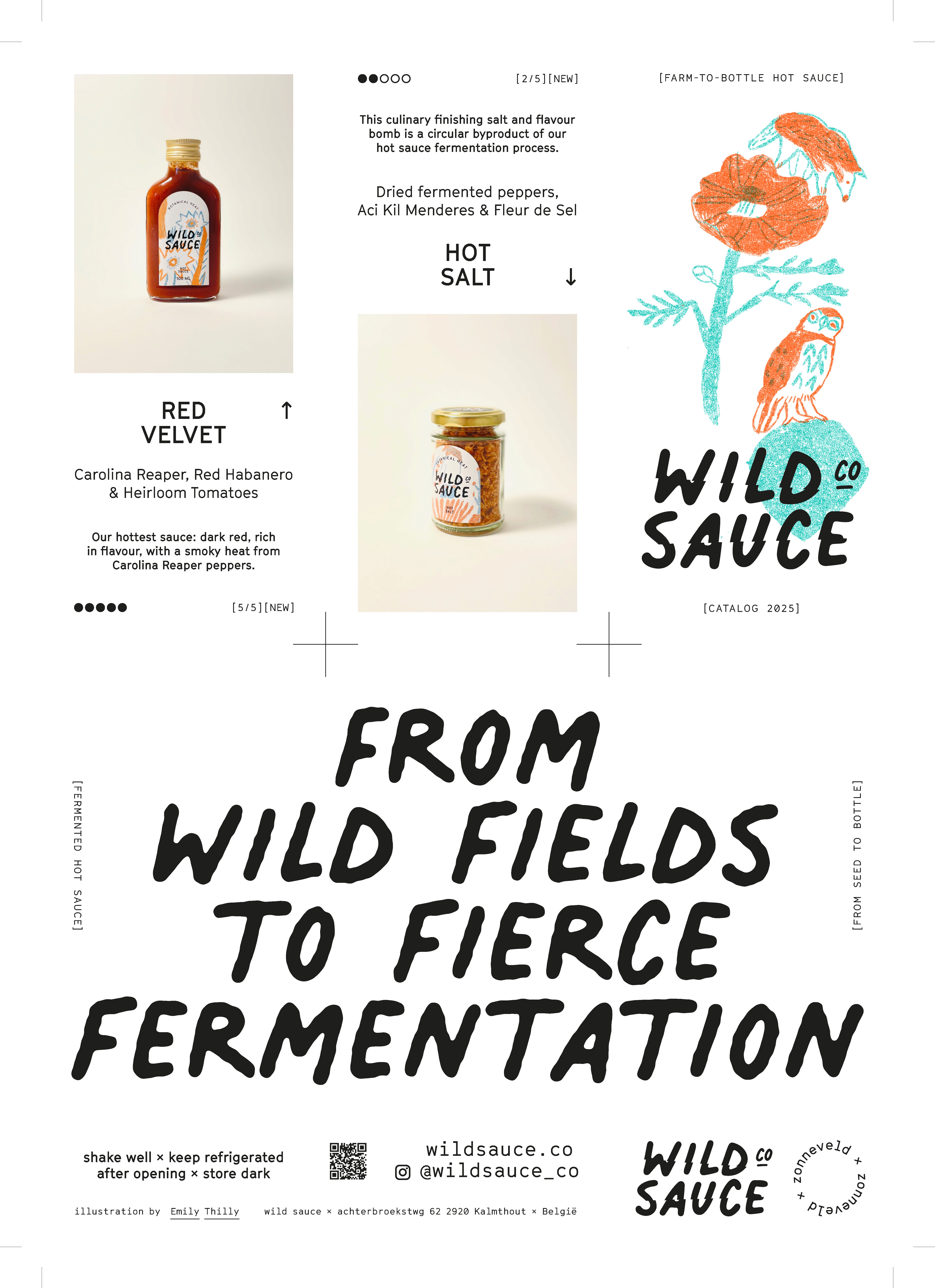 Driven by culinairy experiments, wild ingredients and naturally cultivated produce — they create not your average hot sauce. Small batches, handmade, fermented peppers, regenerative agriculture, … it's really something.